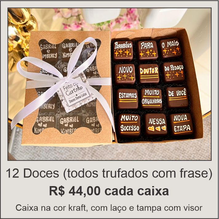R$ 44,00 – 12 doces (todos trufados com frase)