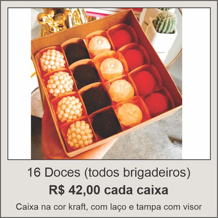 R$ 42,00 – 16 doces (todos brigadeiros)
