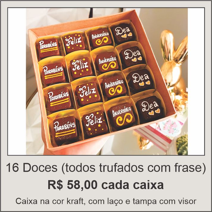 R$ 58,00 – 16 doces (todos trufados com frase)