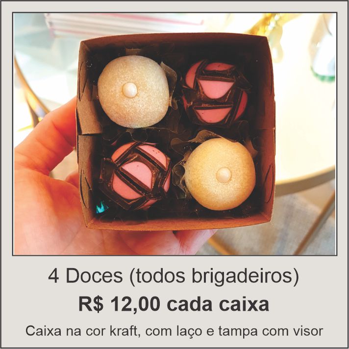 R$ 12,00 – 4 doces (todos brigadeiros)