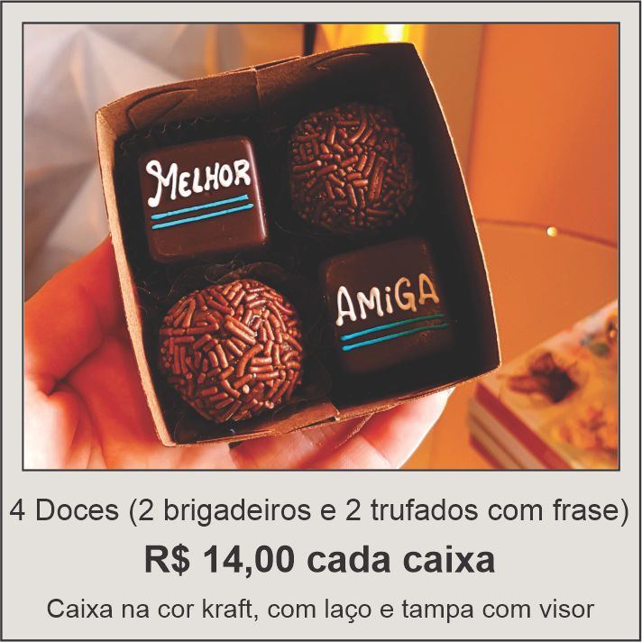 R$ 14,00 – 4 doces (2 brigadeiros e 2 trufados com frase)