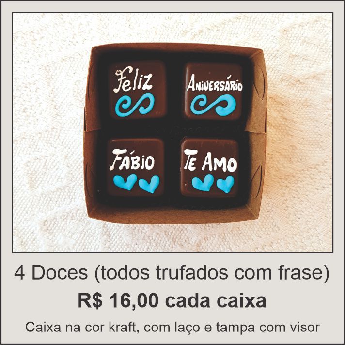 R$ 16,00 – 4 doces (todos trufados com frase)